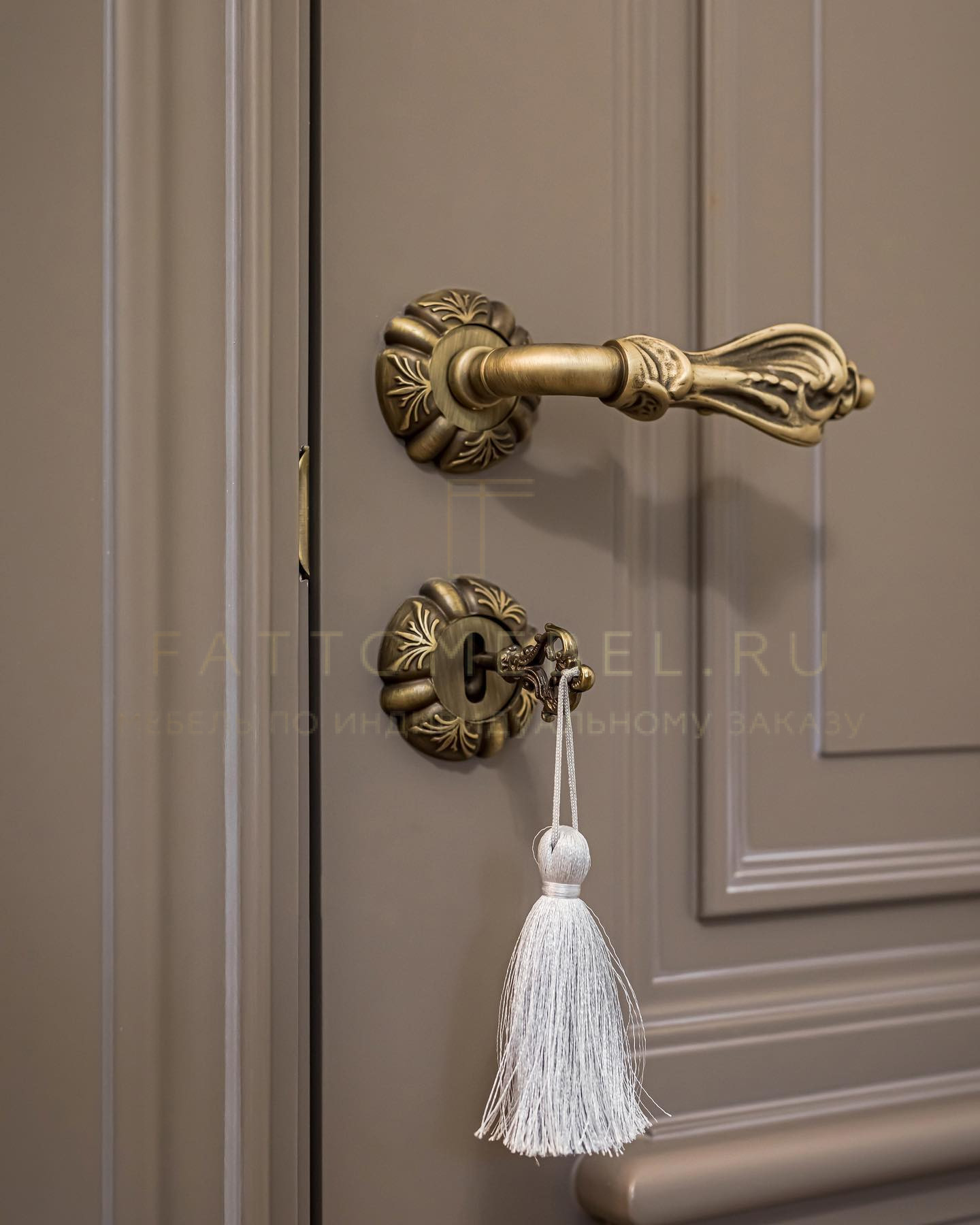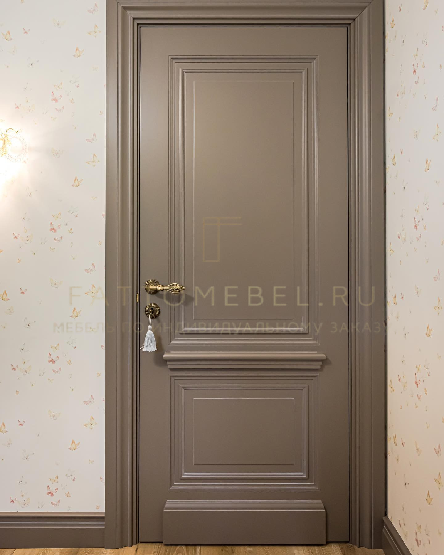 Вход в спальню представляет дверь в классическом стиле, изготовленная нашей компанией по дизайн-проекту из массива ольхи.