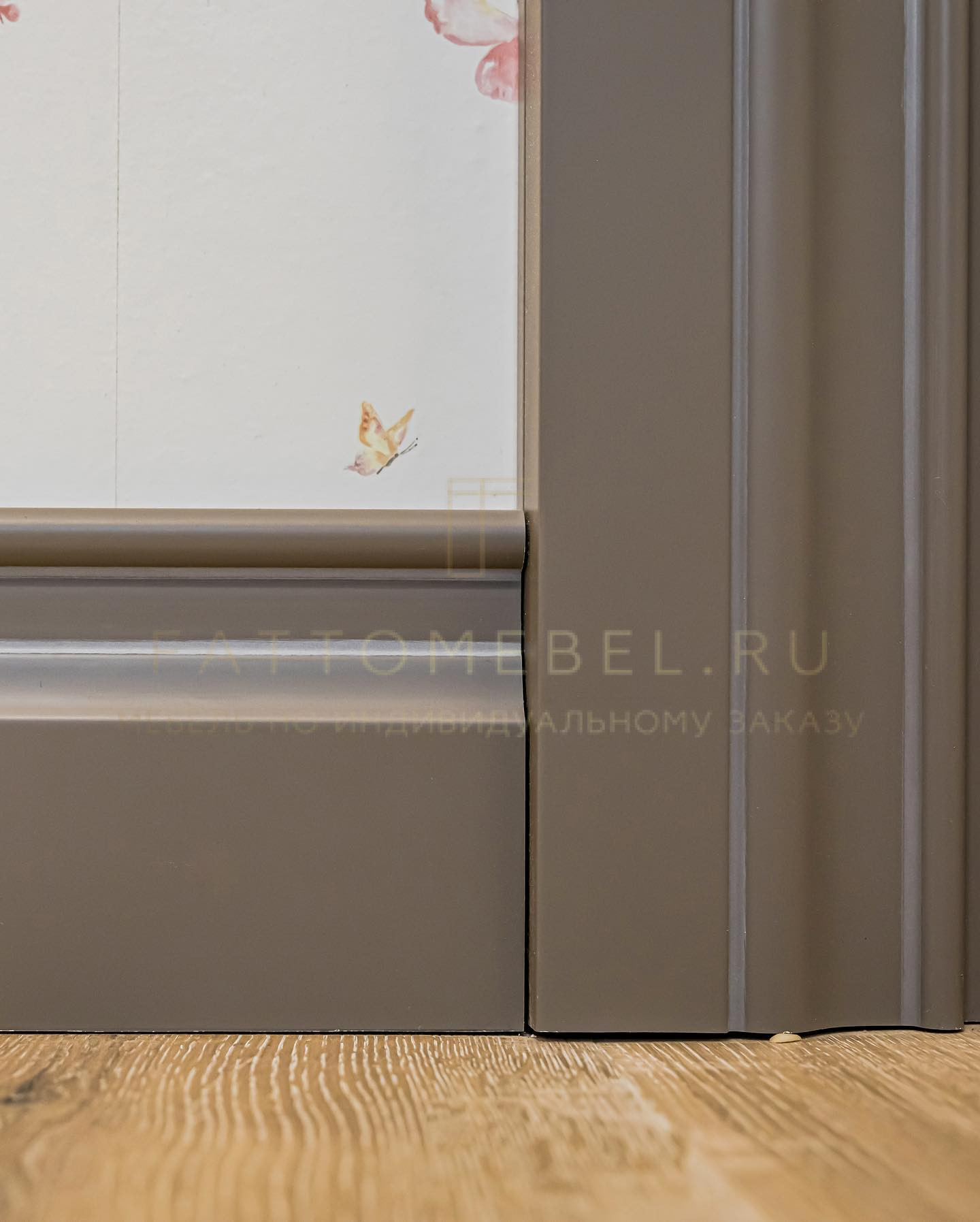 Оформлении межкомнатных дверей и плинтусов в едином стиле — достаточно частый приём, который используют дизайнеры и наши клиенты. Такой вариант покраски придаёт интерьеру гармоничности и в тоже время создаёт в помещении акцент, который оживляет и избавляет от привычных решений, таких, например, как использование плинтуса в цвет пола.