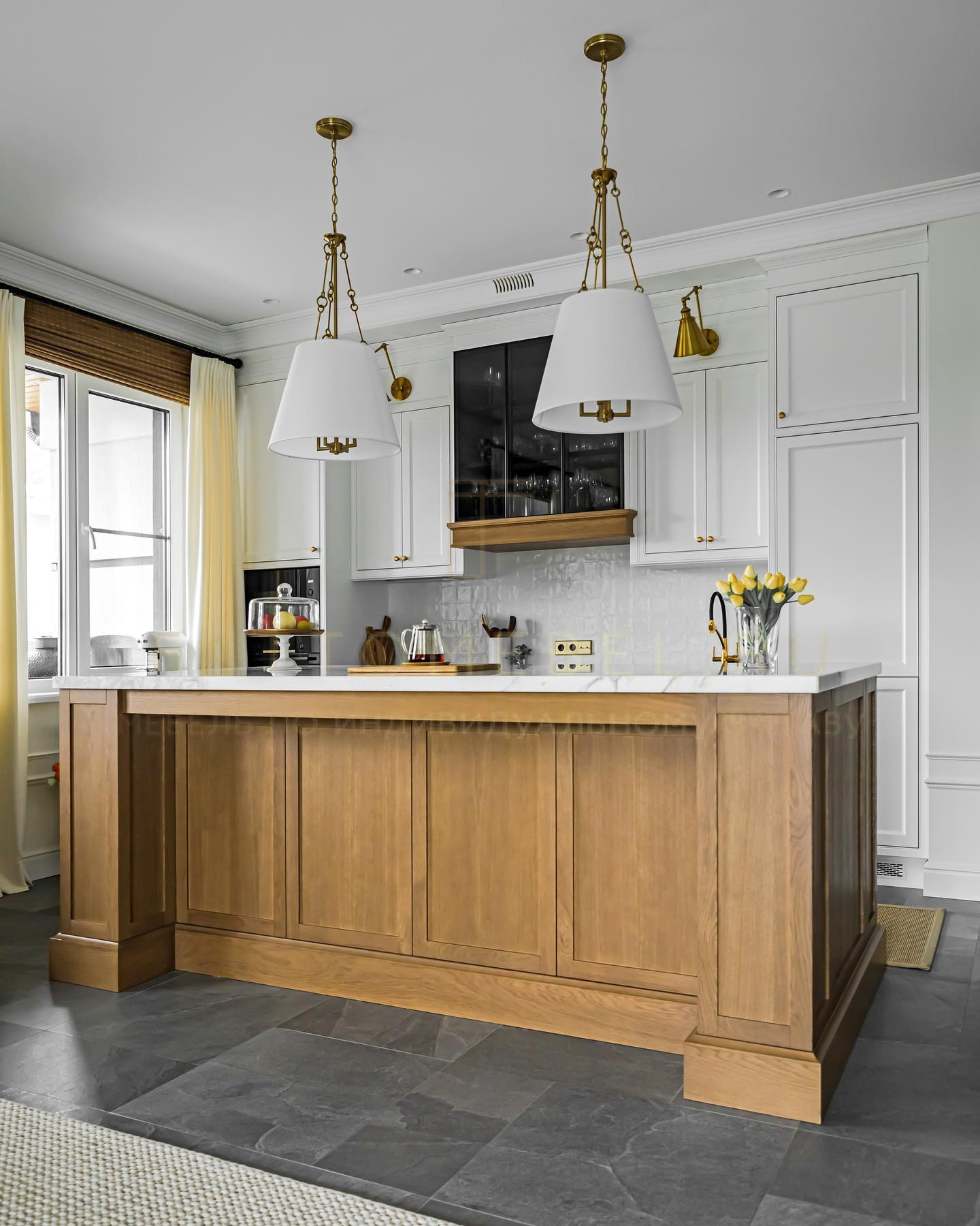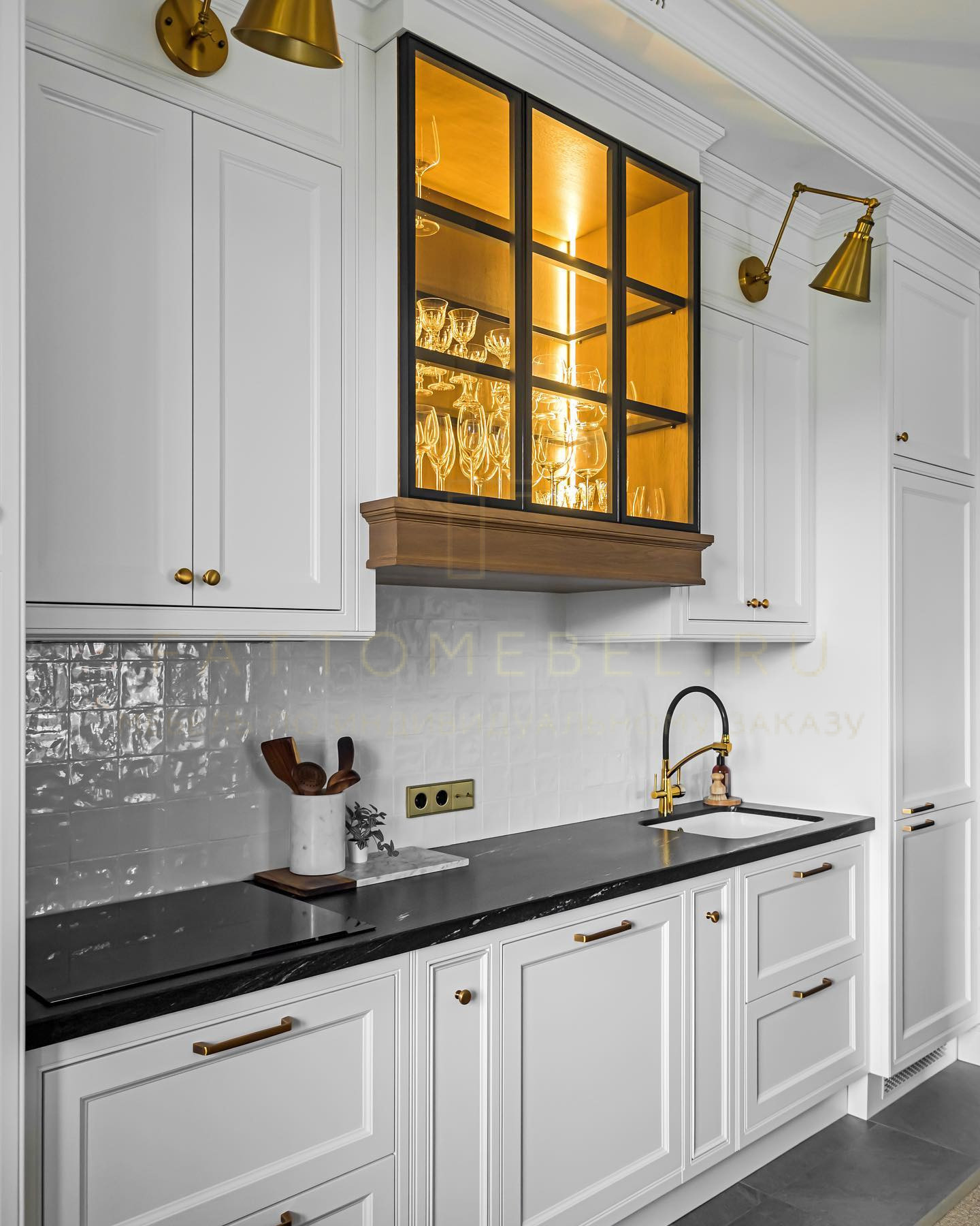 Классический стиль данной кухни умело сочетает в себе изысканные детали, резные декоративные элементы, стеклянные вставки и плавные линии, создавая атмосферу роскоши и утонченности. Кухня с большим островом станет настоящим центром гостеприимства и приятного времяпрепровождения для всей семьи.