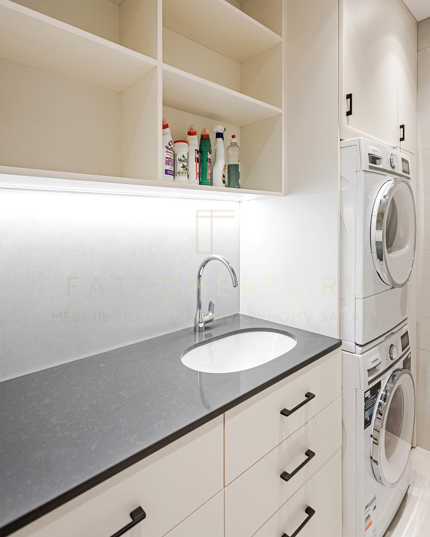 Как создать такую атмосферу, чтобы душа радовалась, даже когда совершаешь обыденные хлопоты? Обратится к профессионалам, чтобы даже такая комната как постирочная радовала глаз своей мебелью и функционалом. С FATTOMEBEL — домашние хлопоты и стирка будут всем только в радость!